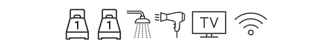 Cette chambre dispose d'une salle de bain intégrée, d'une commode, d'une armoire, d'une petite table pour manger ou travailler, ainsi que d'un fer à repasser et d'une planche à repasser pour votre commodité. Un réfrigérateur, un micro-ondes, une bouilloire électrique et des ustensiles de base sont également à votre disposition. L'eau chaude est disponible à tout moment pour votre confort.